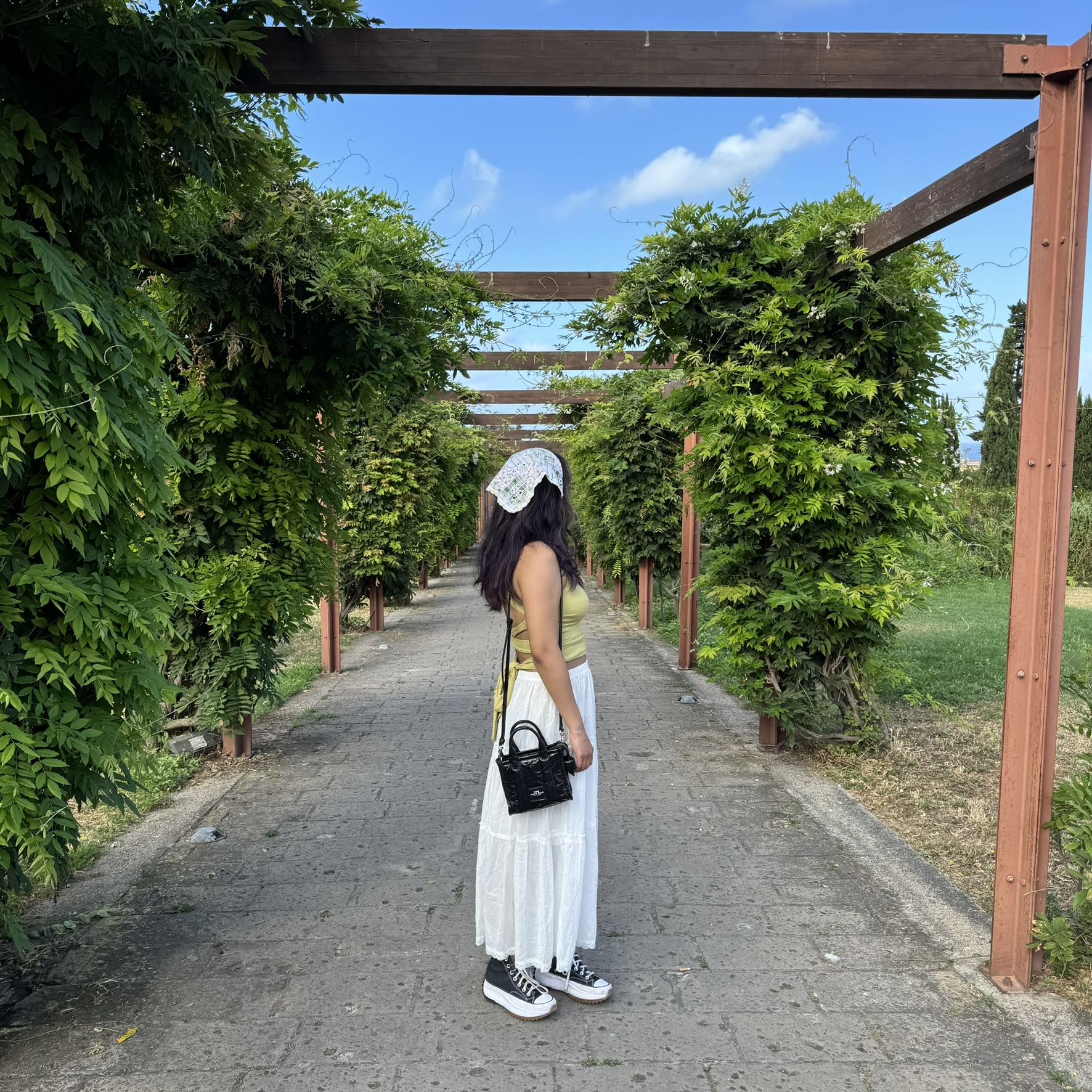 My girlfriend standing in Ercolano, Italy, surrounded by vines.