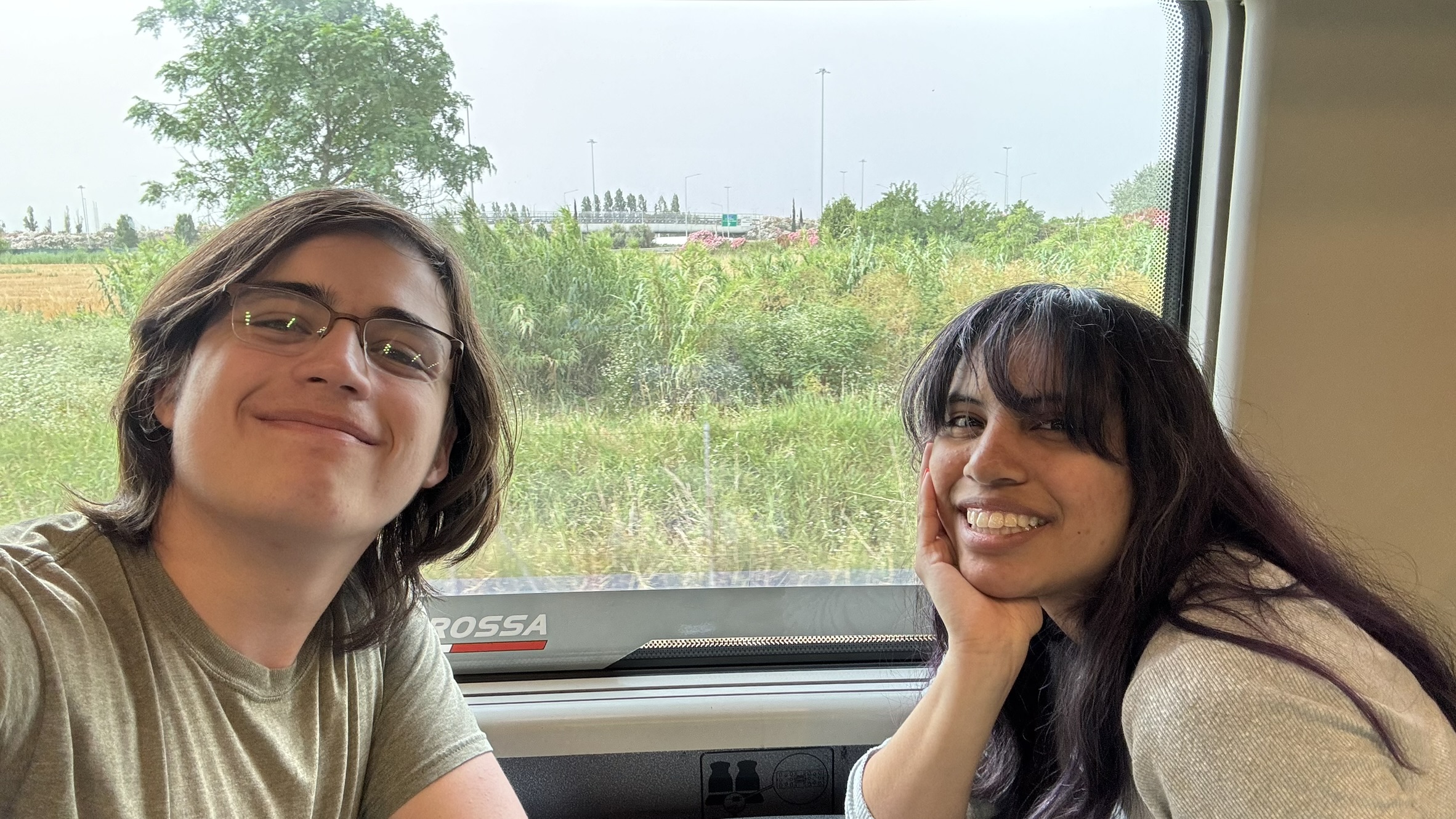 My girlfriend and I on the train, exhausted from traveling around Italy.